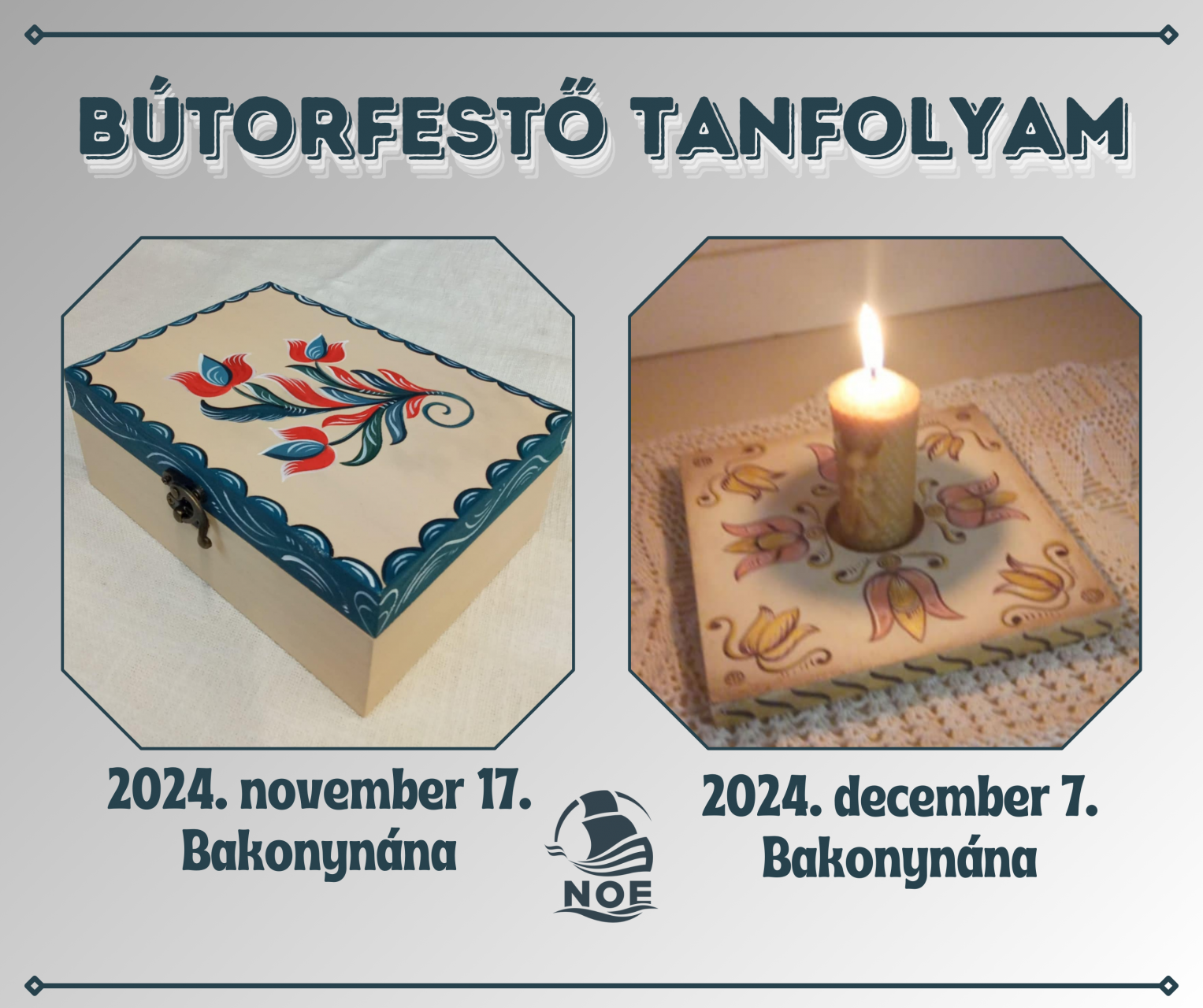 Budai C. Katalin bútorfestő megnyitja számunkra bakonynánai műhelyét és egy ládika illetve egy gyertyatartó készítésén keresztül az érdeklődők kipróbálhatják és megtanulhatják a szakma alapjait.
