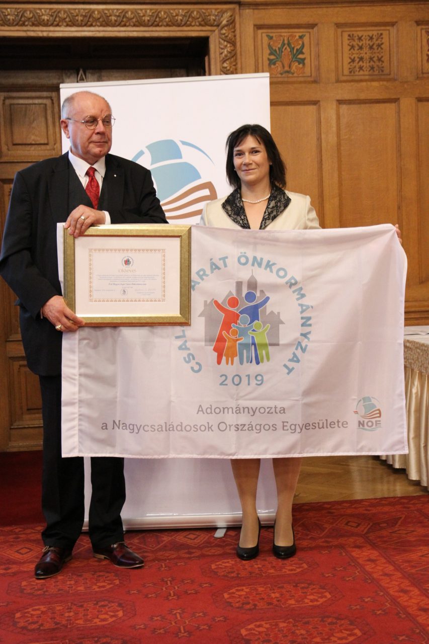 A Nagycsaládosok Országos Egyesülete 2019-ben ismét meghirdette megújult, a nemzetközi sztenderdeket is figyelembe vevő formában a legrangosabb önkormányzatoknak ítélhető hazai civil elismerést, a CSALÁDBARÁT ÖNKORMÁNYZAT- díjat. A 2019. szeptember 4-i díjátadón az elismerést idén 16 önkormányzat vehette át, három kategóriában: 5000 fős vagy kisebb települések, 5000 fő fölötti települések és budapesti kerületek.