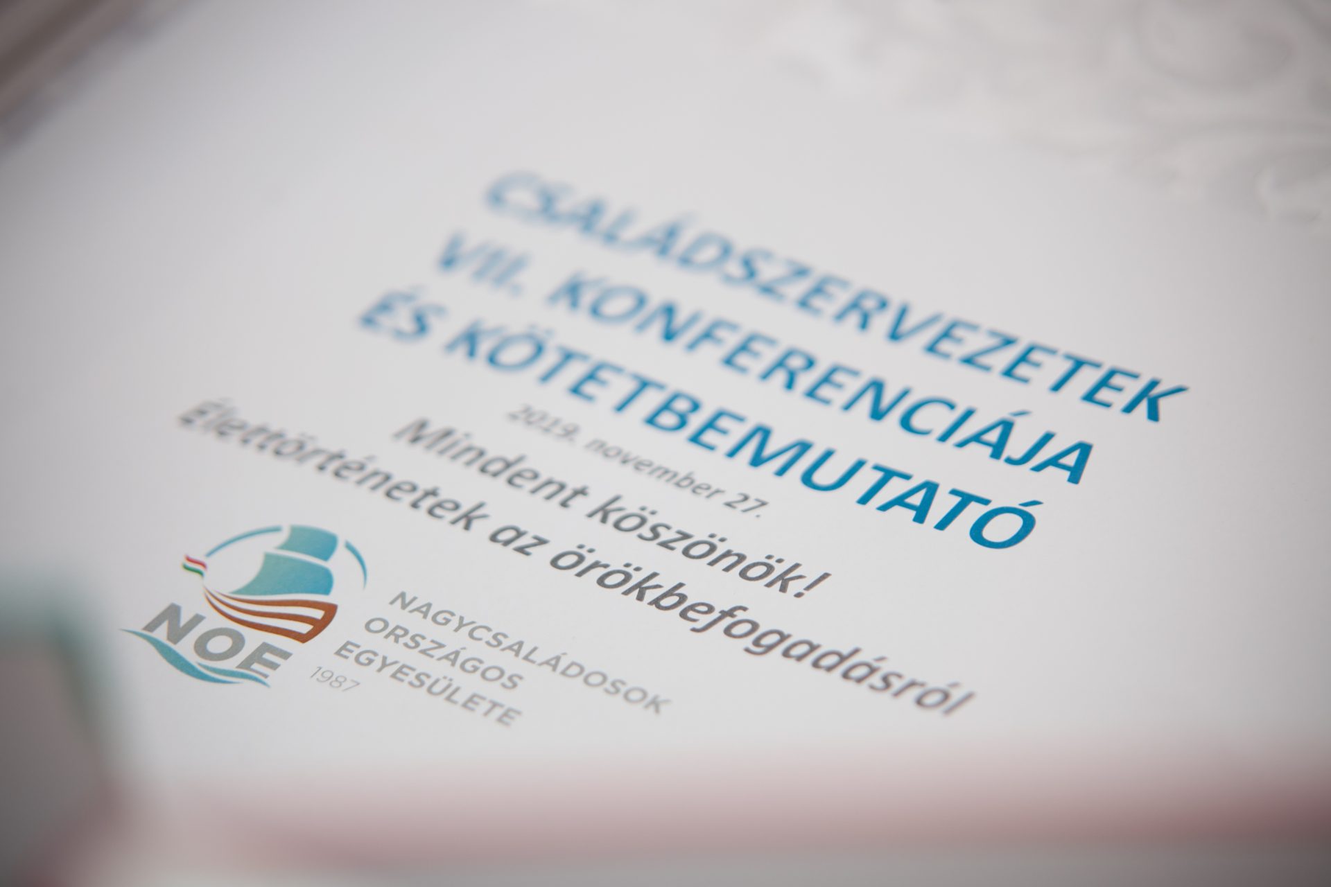 A NOE szorosan együttműködik azokkal a szervezetekkel, amelyek tevékenységüket a családok, a gyermekek, a magyar társadalom erősítése érdekében fejtik ki. Ezért egyesületünk töretlen célja, hogy folytassa hagyományos családszervezeti konferenciáját. Az immár hetedik alkalommal megrendezésre került eseményen lehetőség nyílt a közös gondolkodásra és a közvetlen információ- és tapasztalatcserére.