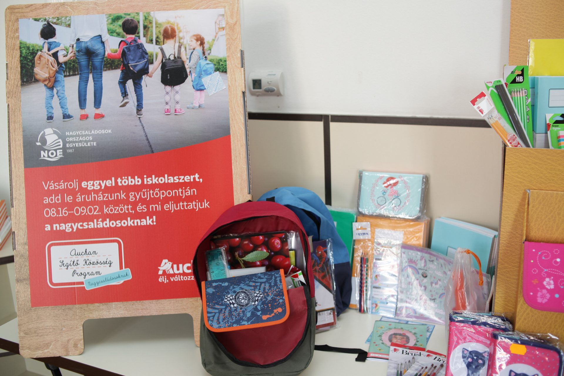 Augusztus 16-án indult az iskolakezdés megkönnyítésére indult akciónk az Auchan áruházlánccal partnerségben. Ez volt az első alkalom, hogy az iskolakezdés kapcsán vettünk részt gyűjtésben, nem tudtuk biztosan, hogy mire számíthatunk pontosan, de az eredmények minden várakozásunkat felülmúlták. Közel ezer, pontosan 964 család részesült az adományokból, amelyben tolltartó, színes ceruza, füzetek, vonalzó éppúgy volt, mint iskolatáska, így 2484 gyermeknek jutott az iskolaszerekből.