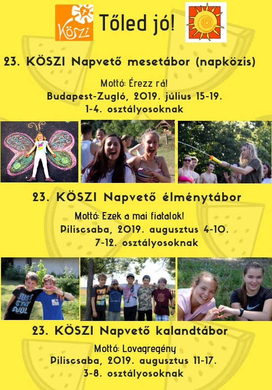 Szeretnénk figyelmetekbe ajánlani a KÖSZI 3 nyári tábor lehetőségét a kisebbek részére, melyekre NOE tagkártyával rendelkező családjaink kedvezményesen tudnak menni.