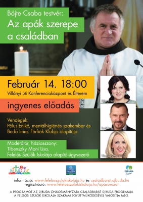 Az apák szerepe a családban címmel öt alkalmas előadás-sorozatból, mely a Családbarát Újbuda Program keretében, a Felelős Szülők Iskolája szakmai rendezésében indul útjára február 14-én, Böjte Csaba testvér előadásával.