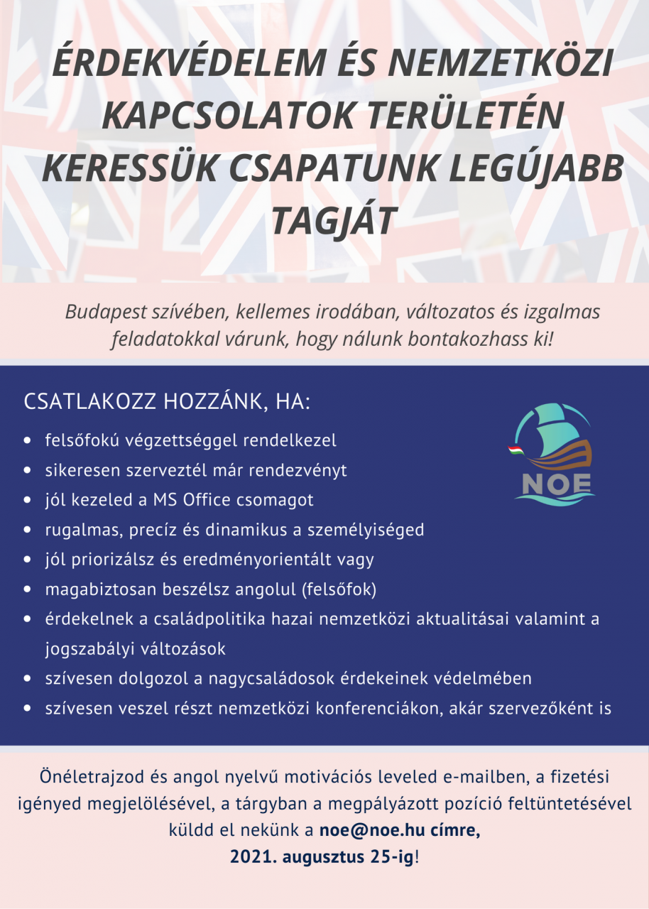 ÉRDEKVÉDELEM ÉS NEMZETKÖZI KAPCSOLATOK TERÜLETÉN KERESSÜK CSAPATUNK LEGÚJABB TAGJÁT