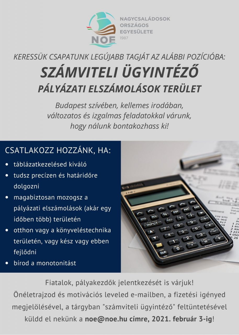 Csatlakozz hozzánk számviteli ügyintéző – pályázati elszámolási területre, ha