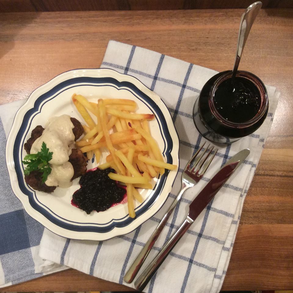 Ha minden elkészült, akkor a zsiradék egy részét leöntjük. A maradékba elkeverjük a lisztet, majd hozzáaadjuk a tejszínt, tejfölt, szójaszószt, sót, borsot. Alaposan elkeverjük és annyi vizet adunk hozzá, hogy folyós állagot kapjunk. (eredeti receptben húsleves alaplével hígít, nekünk ez nem volt kéznél, így improvizáltunk). A golyókat sült krumplival, áfonya lekvárral és a barna szósszal tálaljuk, akárcsak az ikeában 🙂