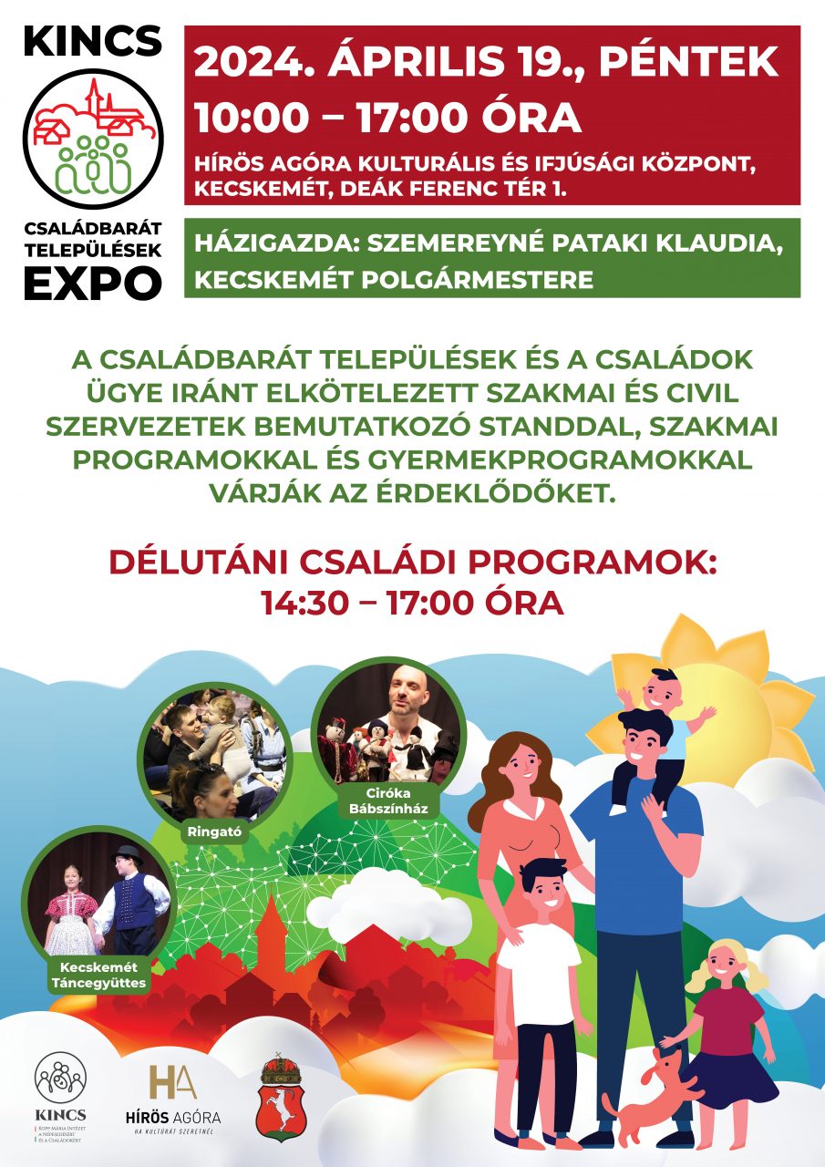 A családbarát települések és a családok ügye iránt elkötelezett szakmai és civil szervezetek bemutatkozó standdal és gyermekprogramokkal várják az érdeklődőket.