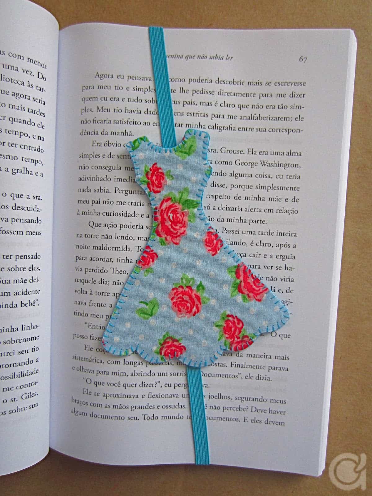 Akiknek tetszik ez a romantikus női ruha rózsákkal, vagy akár fodrokkal díszítve, válassza ezt a könyvjelzőt. A ruha sziluettjéhez szintén tervezzünk egy sablont vagy keressünk a neten. Vágjuk ki a formát az anyagból és a filcből is, majd kezdjük összevarrni a két anyagot apró pelenkaöltéssel. Fent és lent rögzítsük a gumit varrással. A végeredmény garantáltan sikkes és „csajszis” lesz.