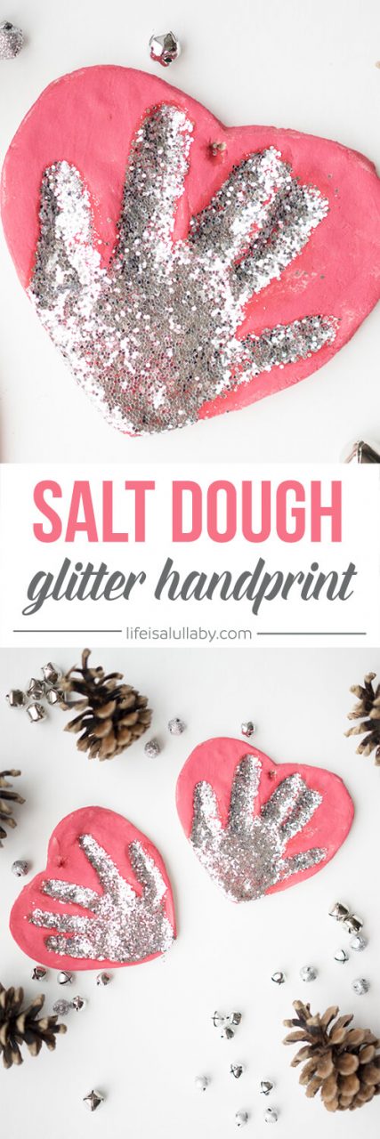 Szinte kihagyhatatlan ötlet a gyerekek kézlenyomatának megőrzése só-liszt gyurmából készült alapon. Annyiban bolondíthatjuk meg az eredeti ötletet, hogy pirosra festjük az alapot, és ragasztóra csillámot ezüst csillámot szórunk. Ez hatásában még inkább kiemeli a lenyomat formáját.