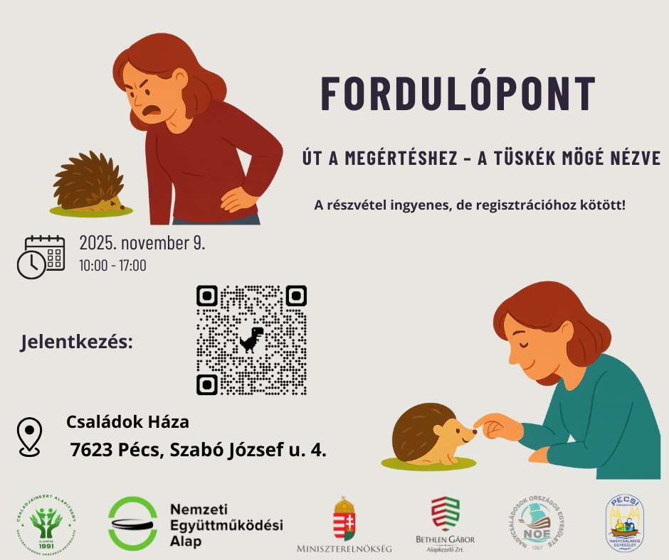 Szeretettel hívunk és várunk benneteket a Fordulópont – Út a megértéshez, a tüskék mögé nézve című országos mini konferenciasorozat pécsi állomására,