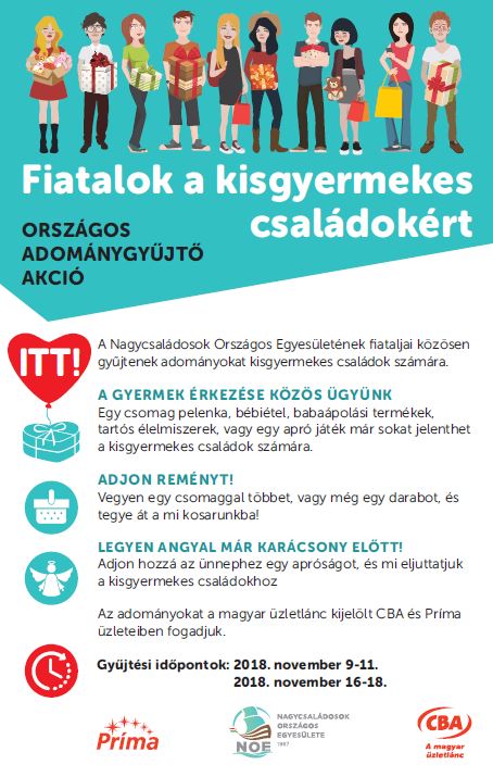 Harmadszor kapott lehetőséget  Egyesületünk a CBA – Príma áruházakban adományt gyűjteni az Adventet megelőző időszakban (így nem folyik össze a gyűjtés, más jótékonysági akciókkal). Tartós élelmiszereket éppúgy gyűjthetünk, mint a kisgyermekeknek való termékeket.