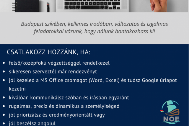 KERESSÜK CSAPATUNK LEGÚJABB TAGJÁT AZ ALÁBBI POZÍCIÓBA: TITKÁRSÁGI ASSZISZTENS RENDEZVÉNYSZERVEZÉS ÉS ADMINISZTRÁCIÓ Budapest szívében, kellemes irodában, változatos és izgalmas feladatokkal várunk, hogy nálunk bontakozhass ki! CSATLAKOZZ HOZZÁNK, HA: felső/középfokú végzettséggel rendelkezel sikeresen szerveztél már rendezvényt jól kezeled a MS Office …