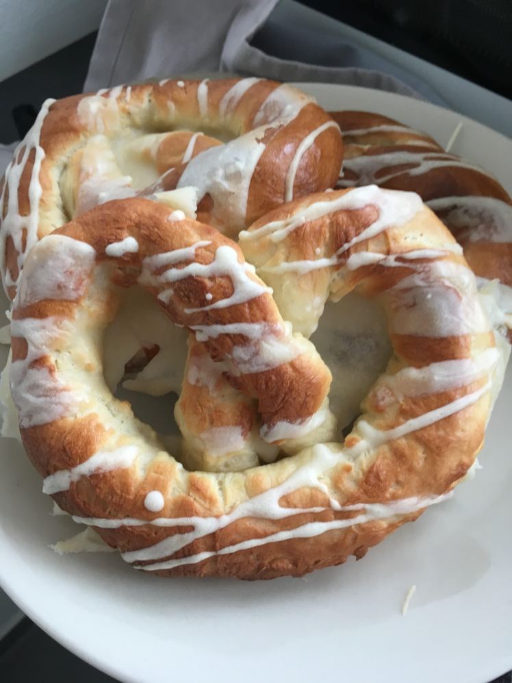 Ha letelt a fél óra, elosztjuk a tésztát annyi felé, ahány perecet kapni szeretnénk, és egyenként addig sodorjuk őket, míg ujjnyi vastag kígyókat nem kapunk. A kígyókból perecet formálunk és letakarva hagyjuk megint pihenni, amíg egy nagy lábosban 1 ek. sóval és 1 ek. cukorral együtt vizet forralunk és a sütőt pedig előmelegítjük 220 fokra.