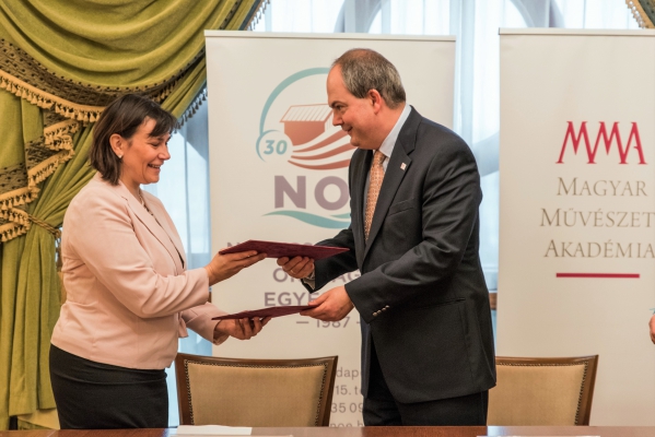 Stratégiai együttműködési megállapodást írt alá a Magyar Művészeti Akadémia (MMA) és a Nagycsaládosok Országos Egyesülete (NOE) csütörtökön az MMA székházában, a Pesti Vigadóban. Az MMA részéről Vashegyi György elnök és dr. Kucsera Tamás gergely főtitkár, a NOE részéről Kardosné Gyurkó Katalin elnök látta el kézjegyével a megállapodást.
