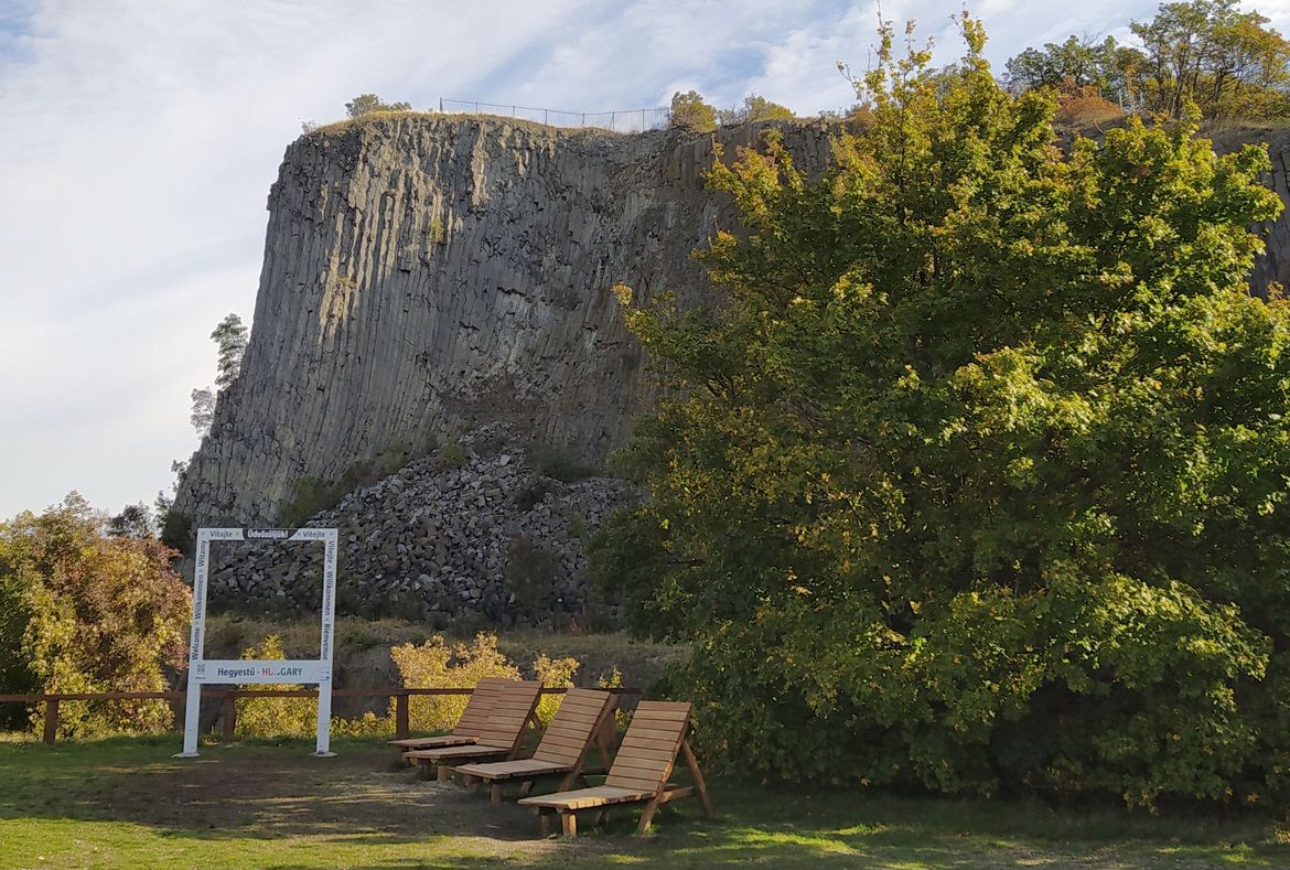 Pazar kilátás egy bazaltvulkánról, séta az egykori kráterben, kiállítás, film, Dunántúli Kőtár