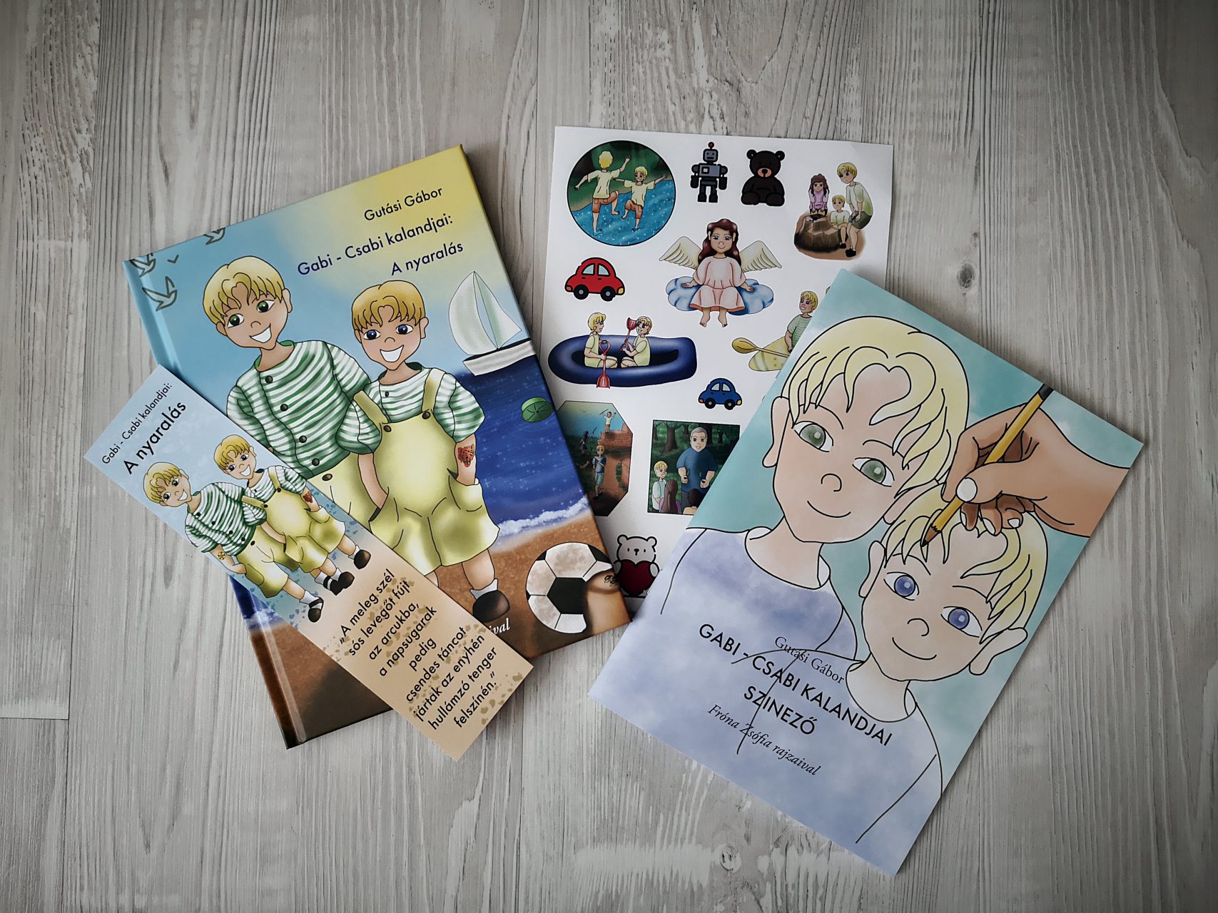 "Gabi – Csabi ajándékcsomag: könyv, színező, könyvjelző, matrica"