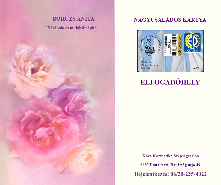 Kézápolás és műkörömépítés szolgáltatások végösszegéből érvényes NOE tagkártya felmutatására.