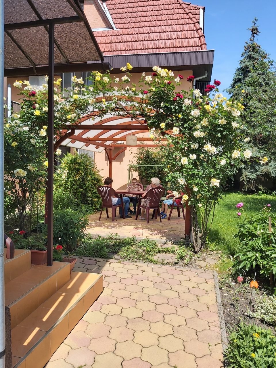 Kerthelység: Az apartmanhoz hangulatos kerthelység is tartozik pagodával, kerti bútorokkal