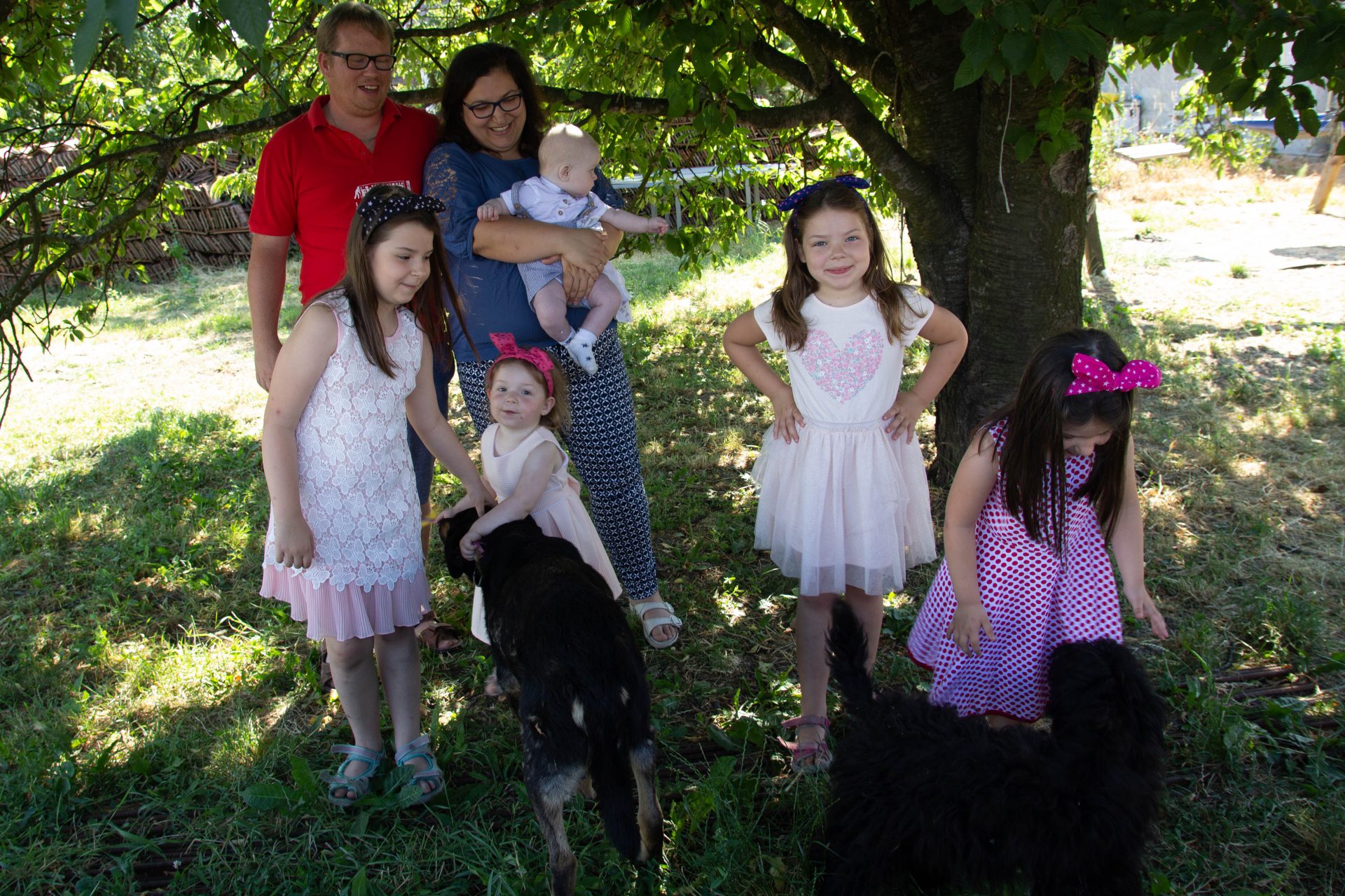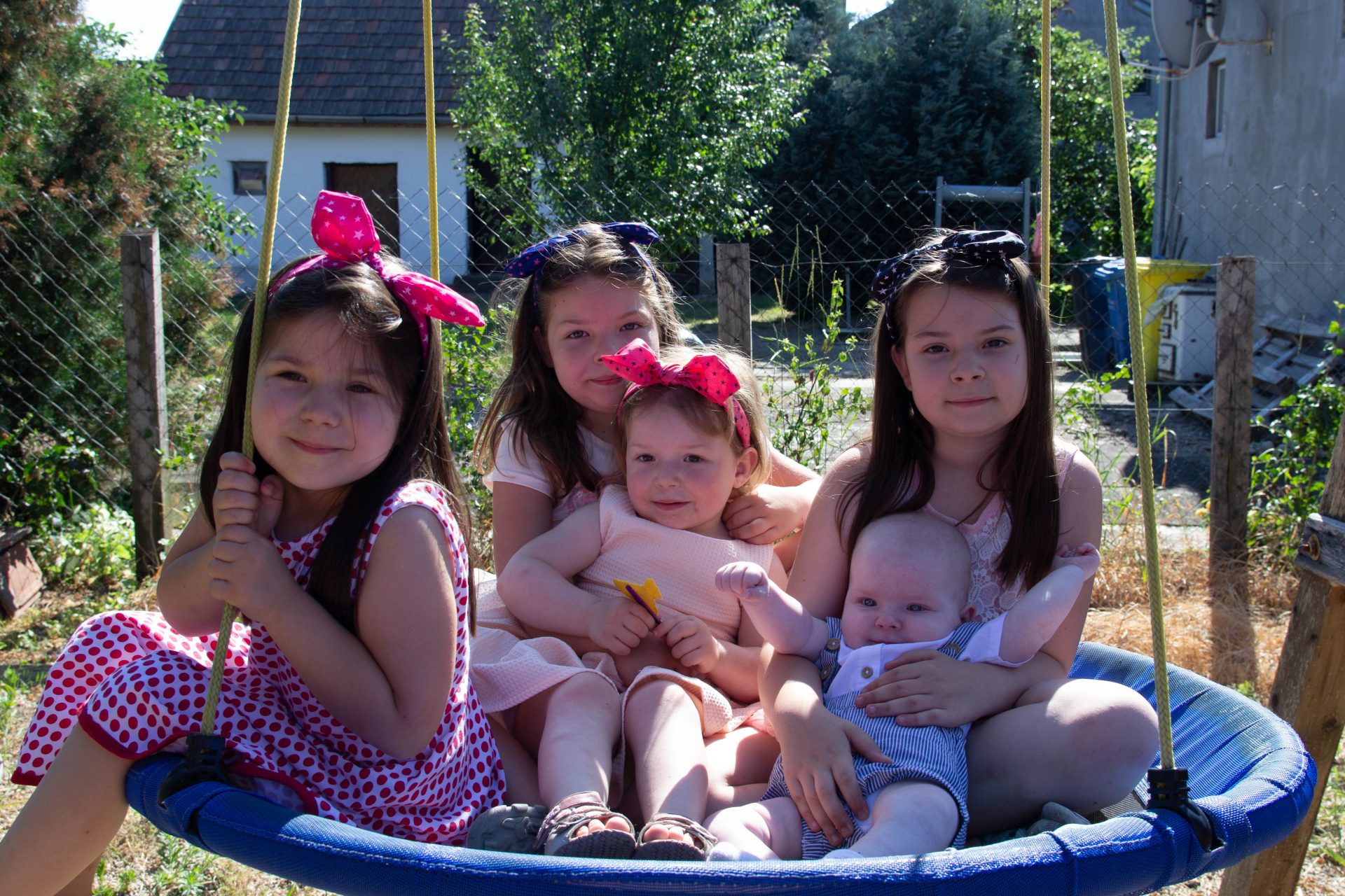 És miért jó nagycsaládban élni? A gyerekek viszonylag kis korkülönbséggel születtek (másfél, két év), hasonló az érdeklődési körük, a nagyok (8 és 7 évesek) rengeteget segítenek a kicsi (5 hónapos) körül. A kisebbek (4 és 2 éves) folyton azt szeretnék tenni, amit a nagyok, ők is írni – olvasni szeretnének. És pont ennek a vágyuknak köszönhetően sokkal gyorsabban fejlődik a mozgásuk, a beszédkészségük, nagyobb és gyorsabb léptekben haladunk az önállóság felé. Továbbá hiszem és vallom, hogy nem csak tanítással, hanem példamutatással is neveljük, formáljuk őket. Amit tőlem látnak a gyerekek, azt viszik tovább magukkal. És egy anyai szívnek nincs nagyobb öröme attól, mint amikor azt meséli az iskolás nagy lánya, hogy aznap segített a takarító néninek virágot öntözni, vagy amikor a nagycsoportosom azért kapta meg az uzsonnához a csengőt, mert aznap ő pakolta el a legtöbb játékot a csoportban. És folytathatnám a felsorolást. Nagyszerű és felemelő érzés látni, hallani, ahogy a nagy lányaim tanítgatják a kistesókat, mesét mondanak a trónörökösnek, mondókáznak, énekelnek neki. Ahogy számukra a világon a legtermészetesebb dolog mindent megosztani (nemcsak) a tesókkal.