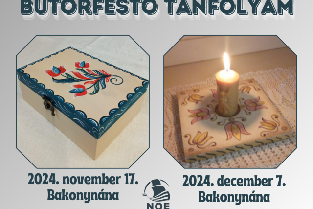 Kedves Családok! Egy újabb kézműves tanfolyamra invitálunk Benneteket szeretettel. Budai C. Katalin bútorfestő megnyitja számunkra bakonynánai műhelyét és egy ládika illetve egy gyertyatartó készítésén keresztül az érdeklődők kipróbálhatják és megtanulhatják a szakma alapjait. A foglalkozások egymástól függetlenek, november 17-én vasárnap …