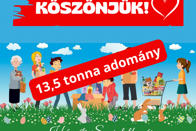 A gyűjtésben közel 500 nagycsaládos önkéntes vett részt. A nagylelkű adományozóknak köszönhetően, minden korábbi gyűjtési rekordot túlszárnyalva, a Húsvéti szeretetkosár adománygyűjtő akció keretében összesen 13,5 tonna adomány gyűlt össze, melyből közel 800 kisgyermekes család számára tudják szebbé és könnyebbé tenni a húsvétot.