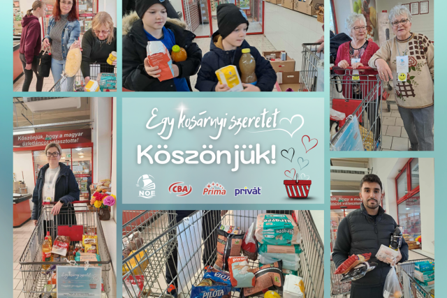 Sikeresen zárult a Nagycsaládosok Országos Egyesülete (NOE), valamint a CBA, a Príma és a Privát bolthálózat közös, Egy kosárnyi szeretet (az előző években Fiatalok a kisgyermekes családokért) elnevezésű adománygyűjtő akciója. Az immár tizenegyedik alkalommal megrendezett gyűjtéssel azoknak a családoknak kívánnak segítséget nyújtani, akik számára az ünnepek közeledte különösen nagy anyagi terhet jelent. A kezdeményezésnek hála évről-évre több tonna élelmiszer és más adomány gyűlik össze, így egyre több családnak jut a gondosan összeállított ajándékcsomagokból.